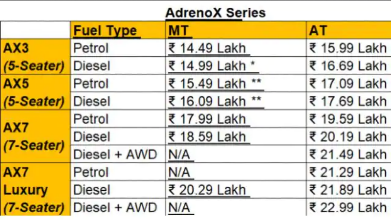 जानकारी के अनुसार अब MX पेट्रोल वेरिएंट की कीमत 12.49 लाख रुपये (एक्स-शोरूम, दिल्ली) तय कर दी गई है। इस वेरिएंट की कीमत में तकरीबन 50,000 रुपये का इजाफा किया गया है जो कि पहले 11.99 लाख रुपये थी। वहीं डीजल वेरिएंट की कीमत 12.99 लाख रुपये से शुरू होती है। यहां नीचे सभी वेरिएंट्स की नई कीमत दी जा रही है।