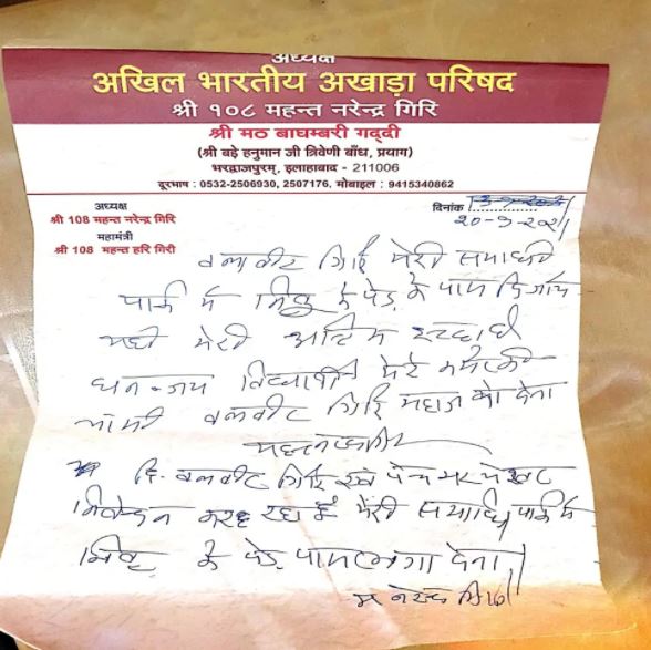 18. सुसाइड नोट पर महंत नरेंद्र गिरि नाम से हस्ताक्षर भी हैं.