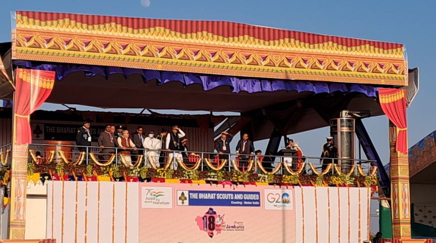 राष्ट्रपति द्रोपदी मुर्मू 3 बजे आबूरोड से जम्बूरी स्थल पहुंचीं। यहां उन्होंने आयोजन स्थल का निरीक्षण किया। इससे पहले राष्ट्रपति द्रोपदी मुर्मू माउंट आबू थीं। यहां सुबह साढ़े तीन 30 बजे ध्यान साधना की मेडिटेशन किया। इसके बाद 7:00 बजे का मुरली क्लास में हिस्सा लिया और वहां सदस्यों को संबोधित किया। वे संस्थान के अंतरराष्ट्रीय मुख्यालय पांडव भवन गईं और वहां ब्रह्मा बाबा की कमरे में और उसके बाद उनकी कुटिया , समाधि स्थल शांति स्तम्भ पर पुष्पाजंलि अर्पित की। हिस्ट्री हाल में बाबा का ध्यान कर फिर वह अपने काफिले के साथ ज्ञान सरोवर पहुंच गई। राष्ट्रपति द्रोपदी मुर्मू ने ज्ञान सरोवर में किया प्लांटेशन भी किया।राष्ट्रपति ने जम्बूरी में संबोधित करते हुए कहा कि स्काउट-गाइड देश का सबसे बड़ा संगठन है। इसमें 24 लाख स्काउट-गाइड है लेकिन इसकी संख्या बढ़ाने की जरूरत है। स्काउटिंग आपका जीवन सवारने का काम करती है। इस दौरान उन्होंने स्काउट-गाइड के बच्चों के साथ हम होंगे कामयाब गीत भी गाया।इससे पहले सीएम अशोक गहलोत ने भी संबोधित करते हुए कहा कि स्काउट-गाइड बनना गर्व की बात है। स्काउटिंग में हम संस्कार और सोशल सर्विस सीखते हैं। सीएम ने कहा कि राष्ट्रपति का आना हमारे लिए गर्व की बात है।